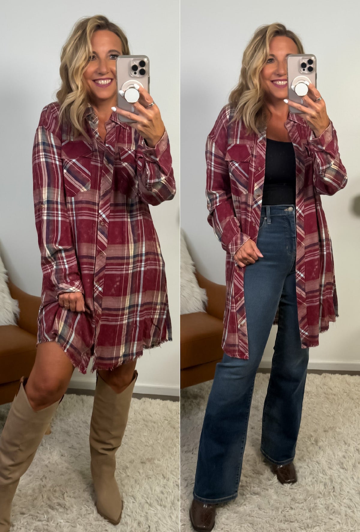 Our Samara dress can also be worn unbuttoned for a top or jacket look. We love it styled both ways!