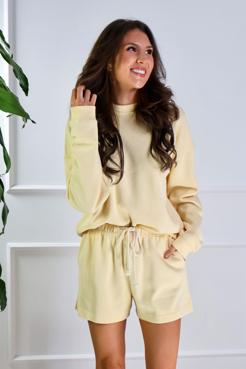 Evelyn Soft Knit Pullover and Shorts Set : Lemon