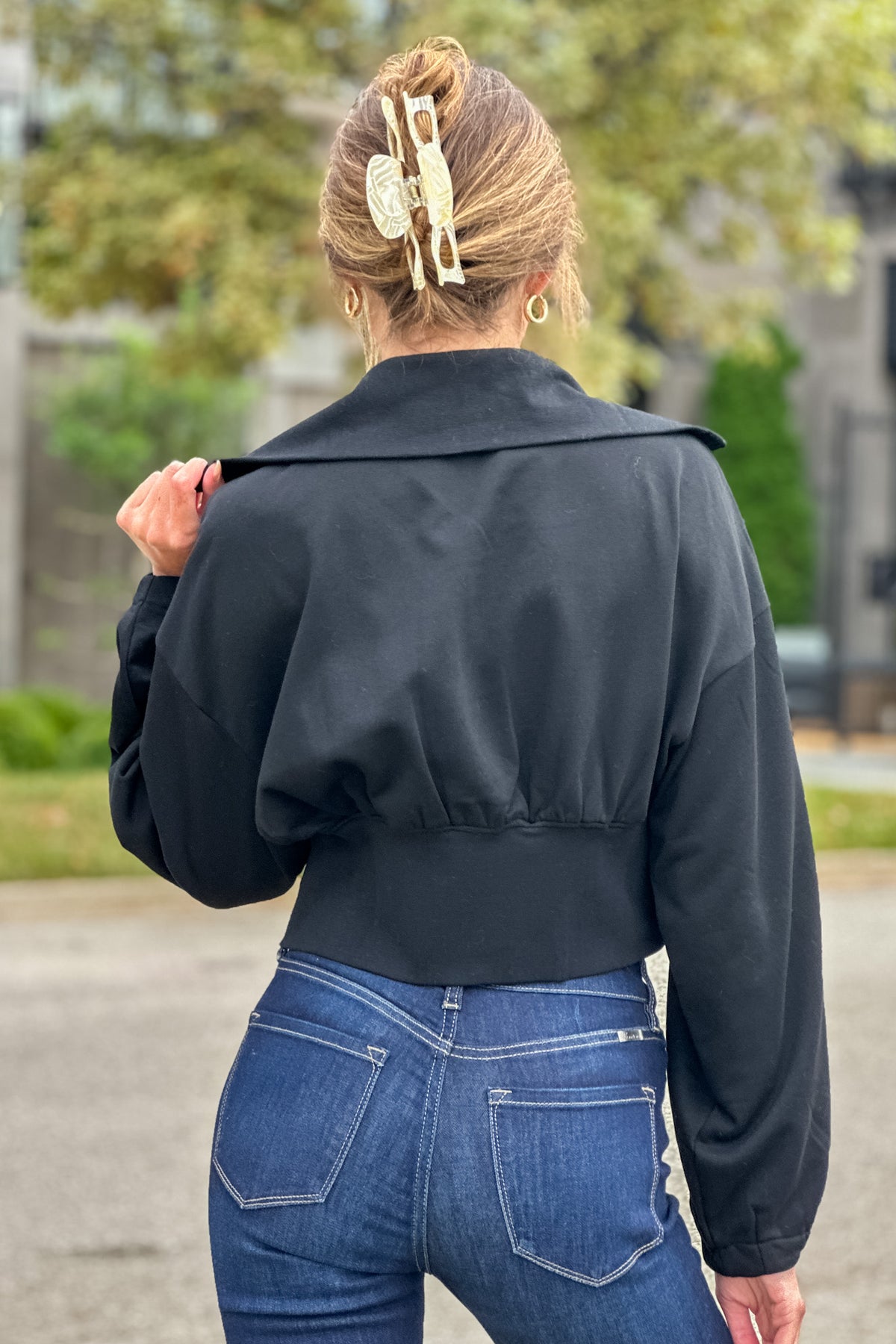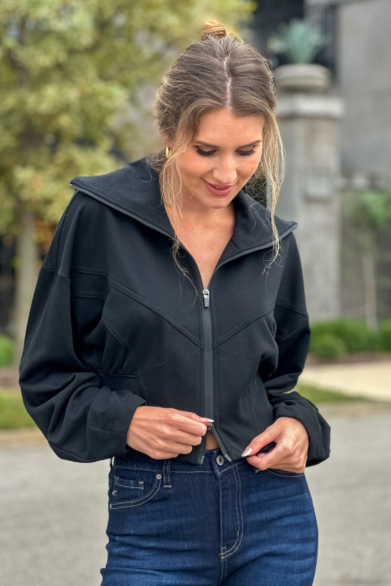 Wrenlee Fleece Front Crop Jacket : Black