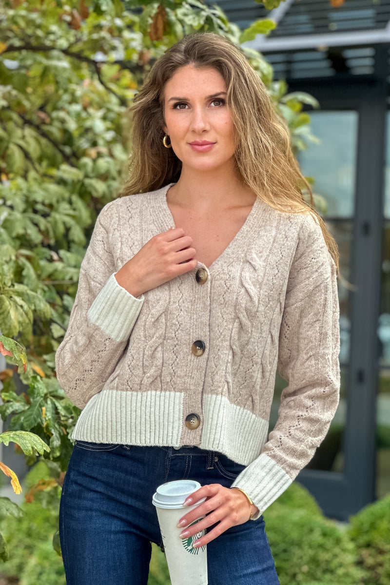 Erryn V Neck Cardigan : Taupe