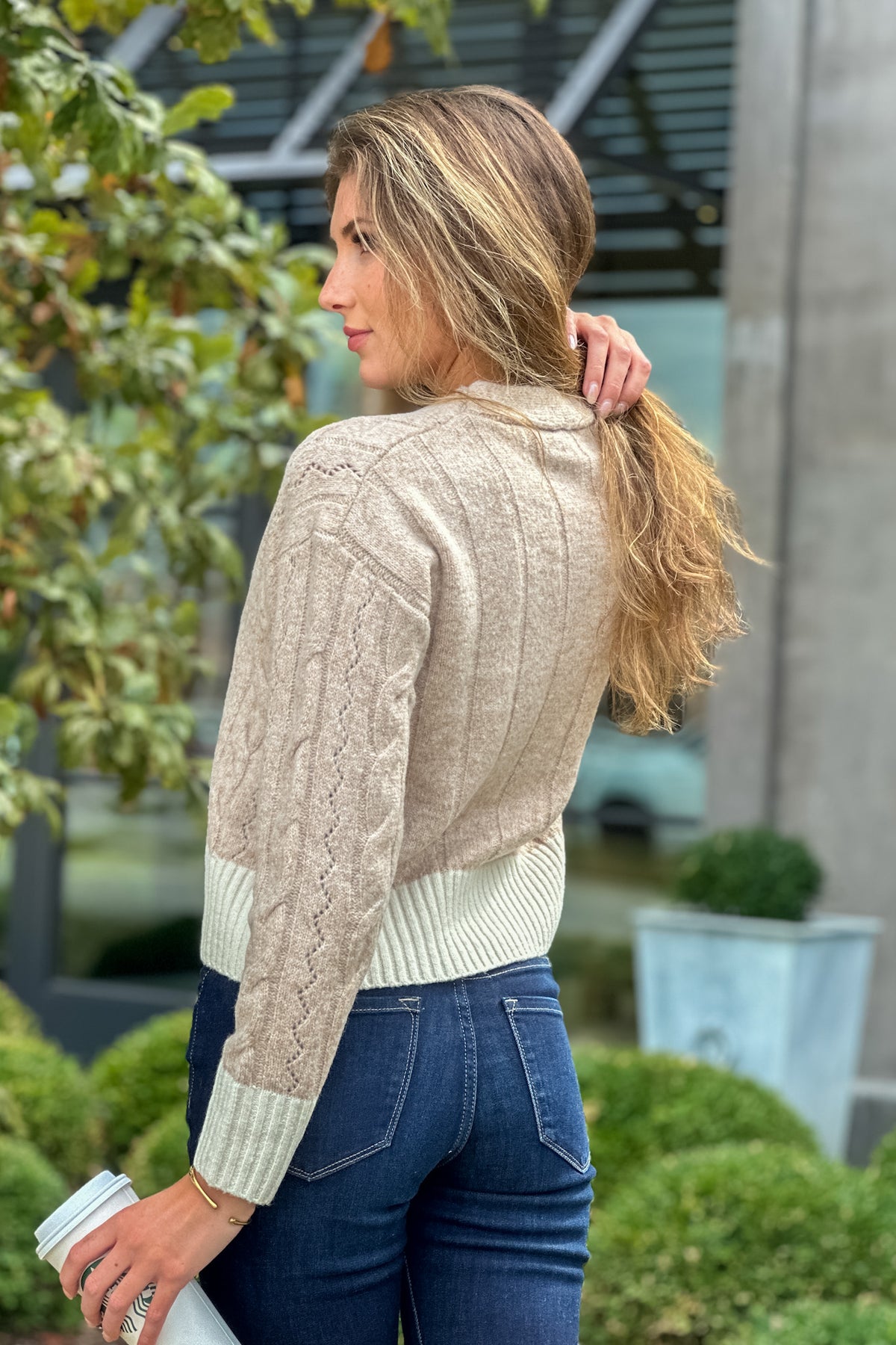 Halo Cable Knit Striped Sweater: Oatmeal