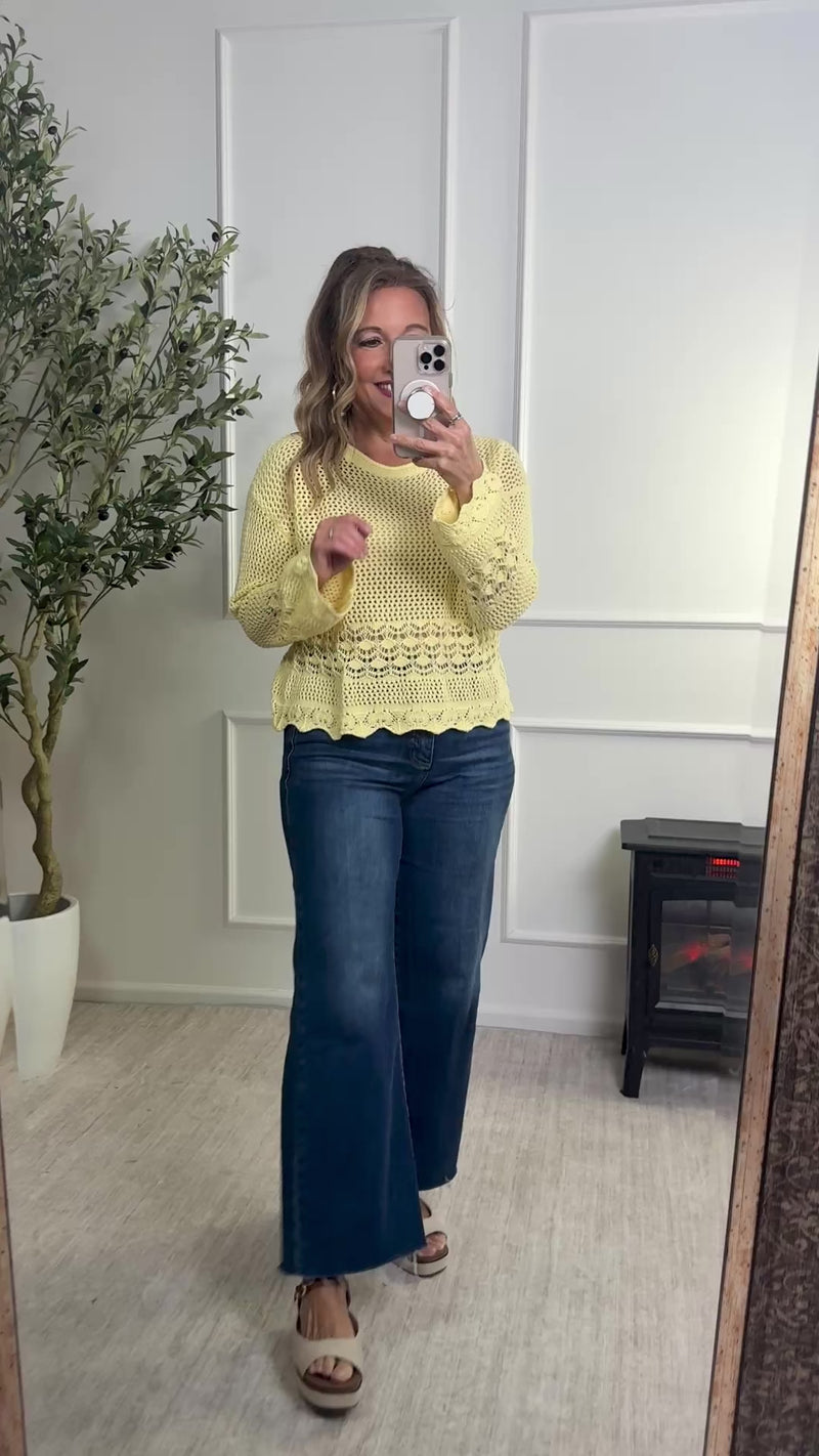 Adalee Light Weight Open Knit Hem Sweater : Yellow