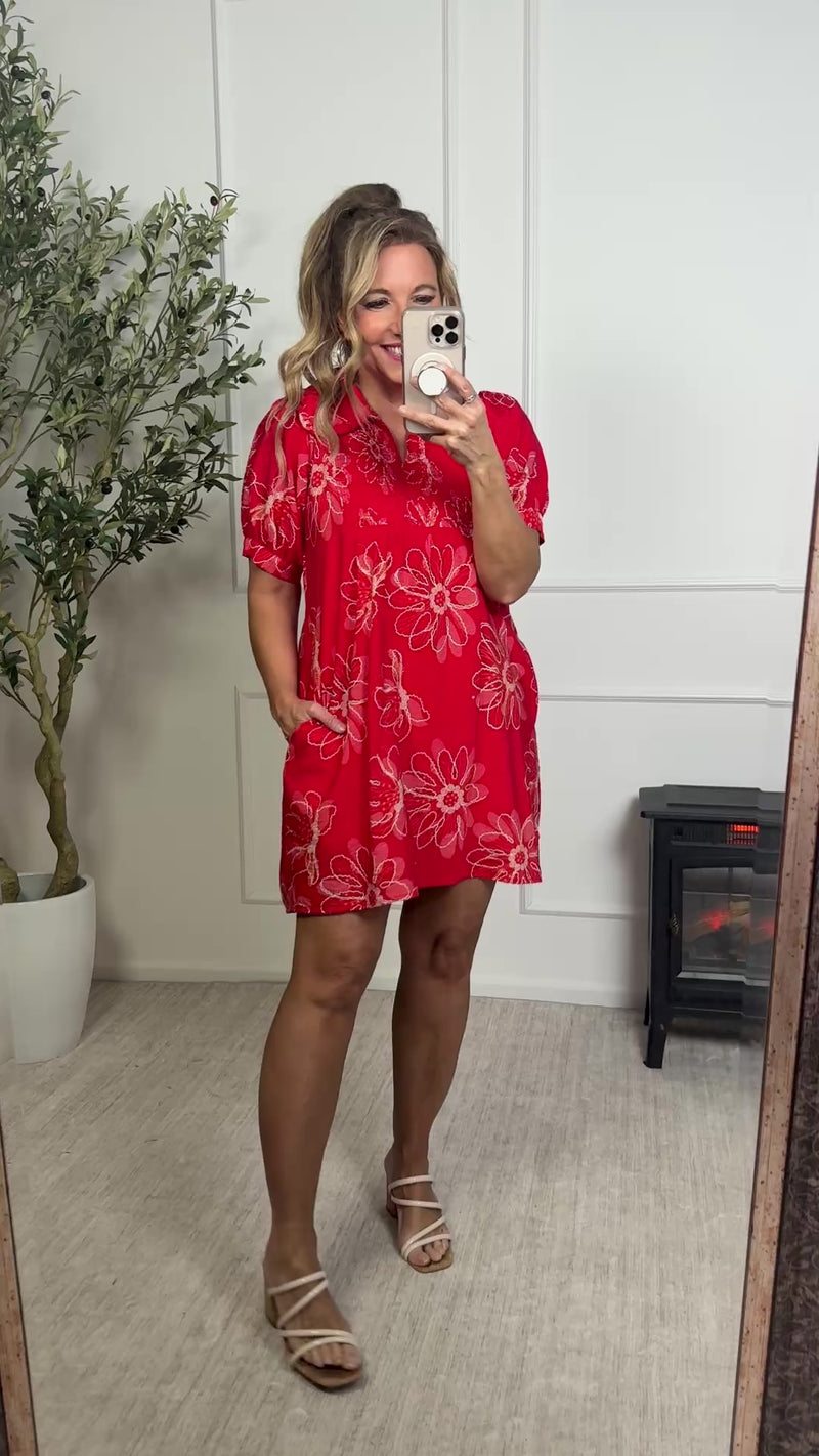 Alena V-Neck Dress : Red