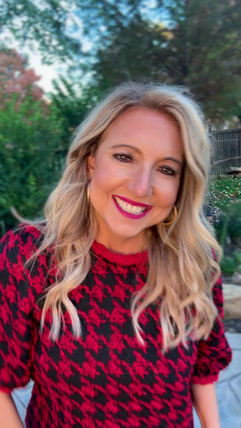 Celine Fringe Detail Houndstooth Tweed Top : Red