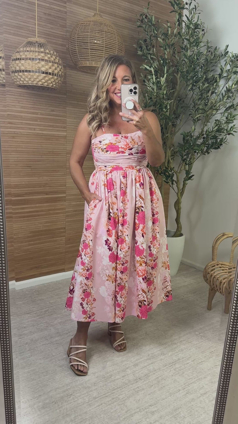 Destiny Flower Print Midi Dress : Pink Multi
