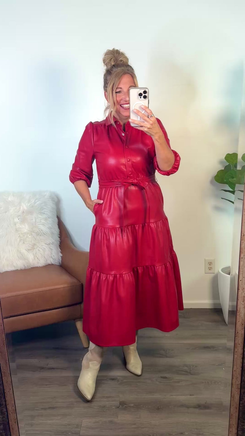 Maemi Faux Leather Dress : Red