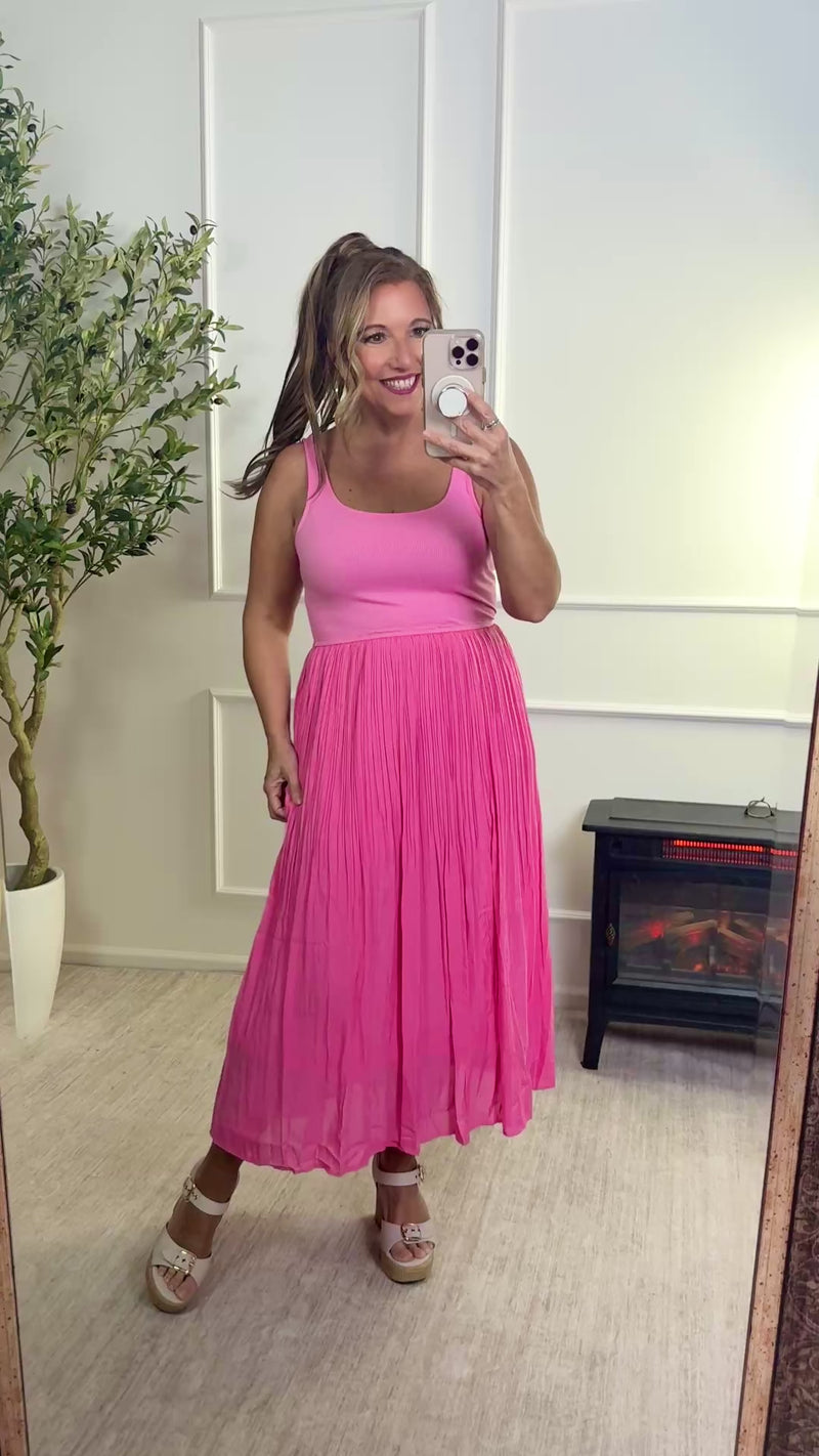 Elianna Scoop Neck Pleated Skirt Tank Dress : Pink