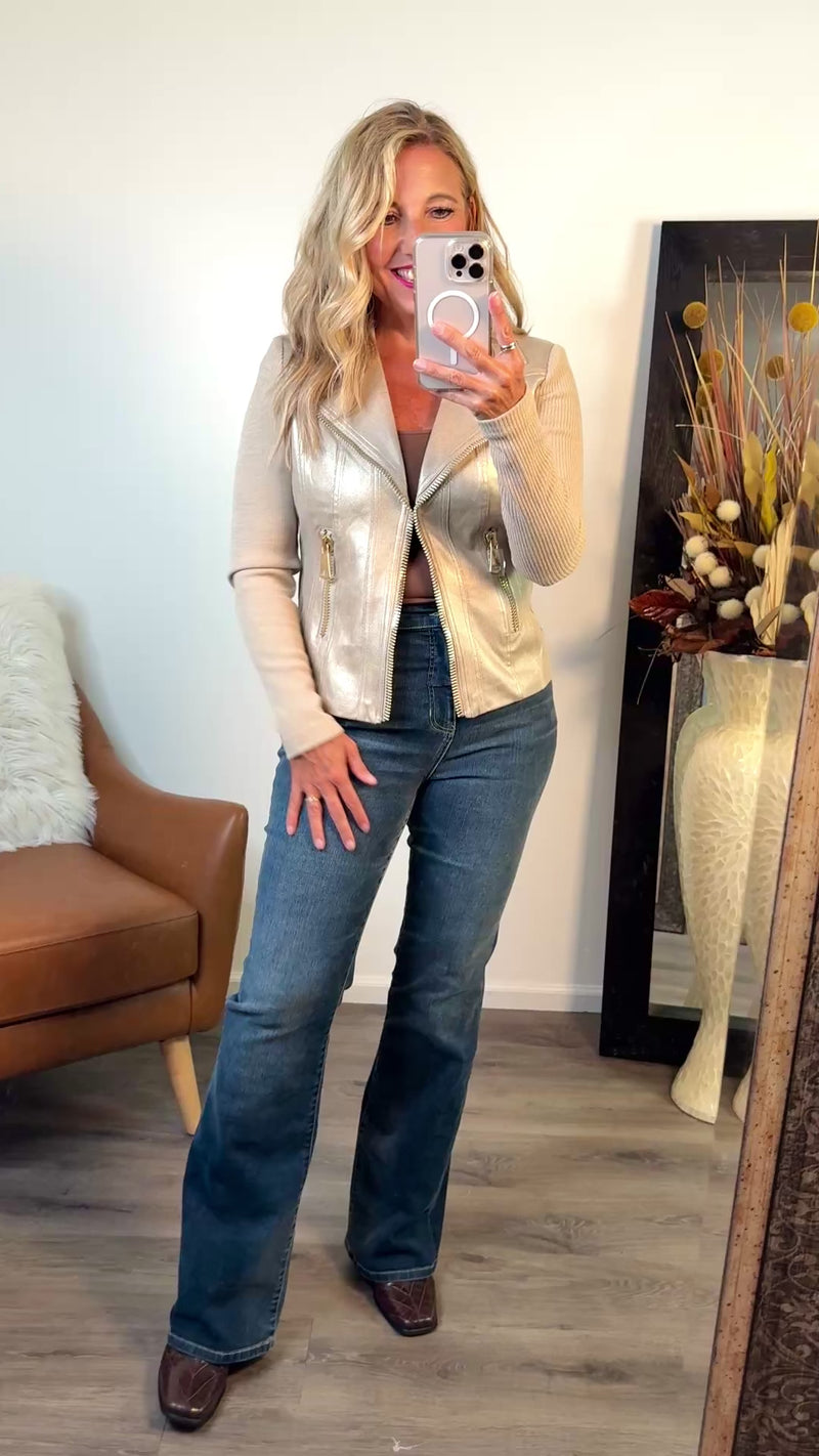Charlie B Elidi Foil Leather/ Rib Knit Combo Jacket : Brass