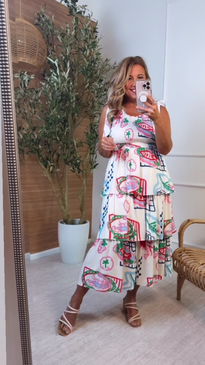 Jimena Printed Midi Dress : White Multi