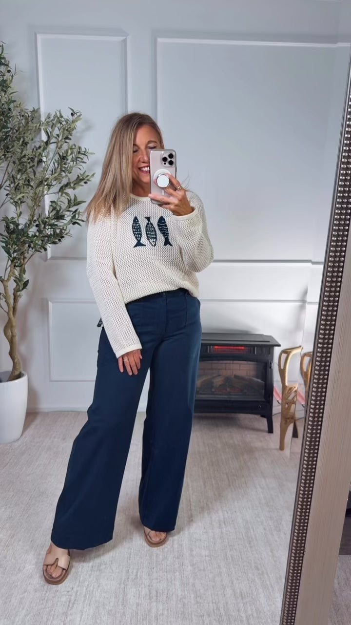 Lillian Fish Trio Open Knit Sweater : Natural