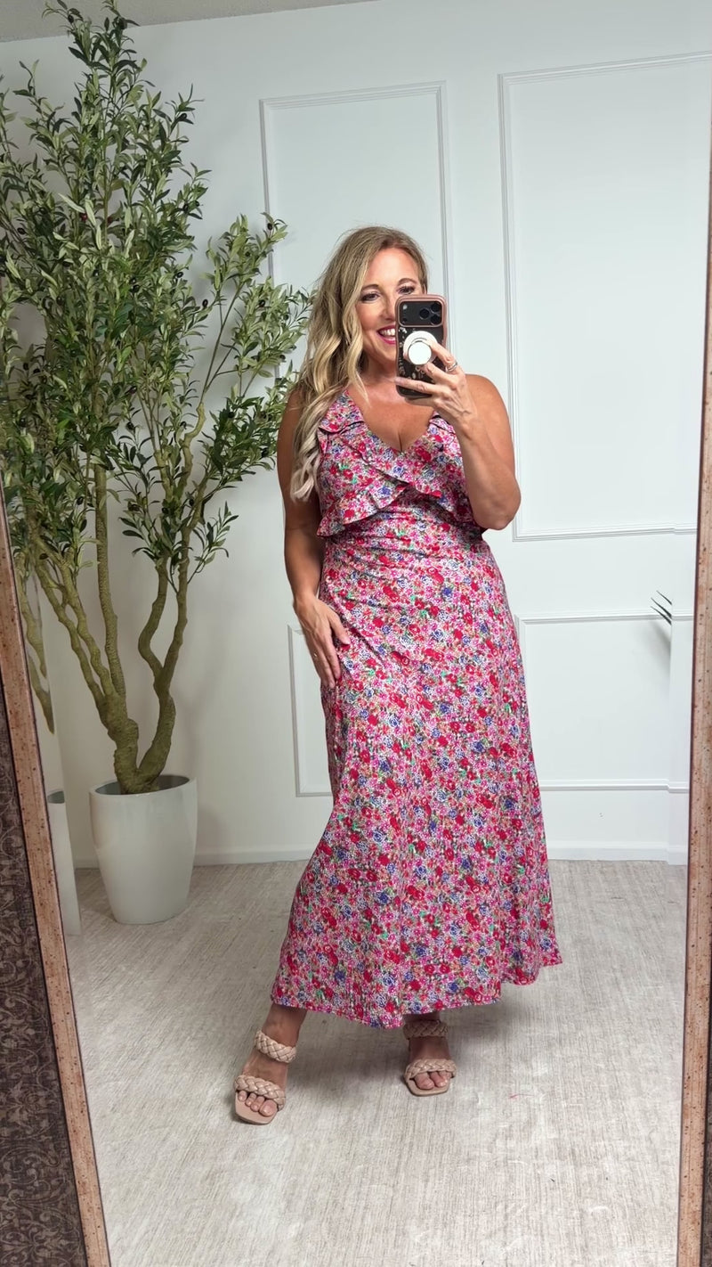 Liverpool Aleena Sleeveless Ruffle Front Woven Dress : Pink Multi