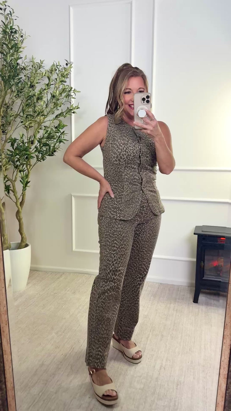 Liverpool Isabelle Straight with Wide Hem Animal Print Jeans : Khaki