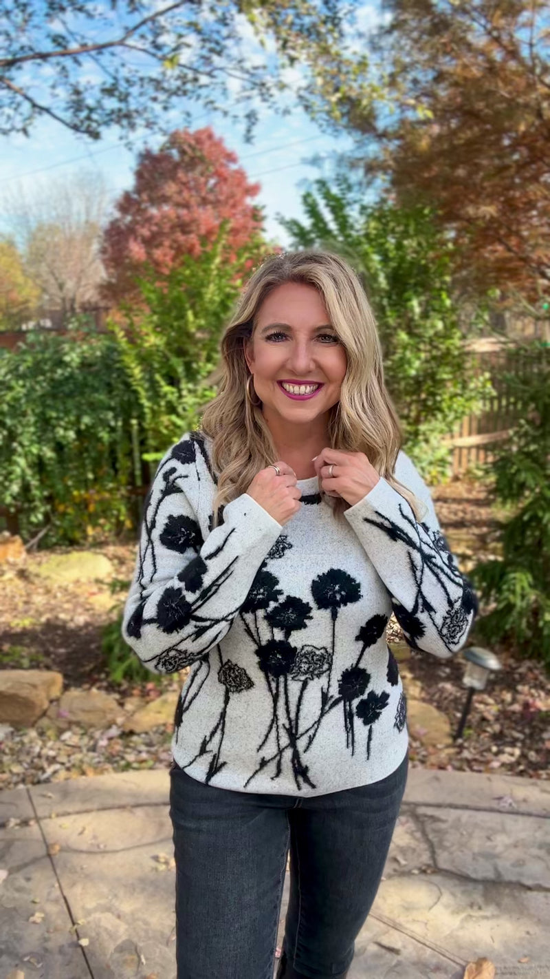 Liverpool Xylah Floral Crew Neck Sweater : Grey/Black