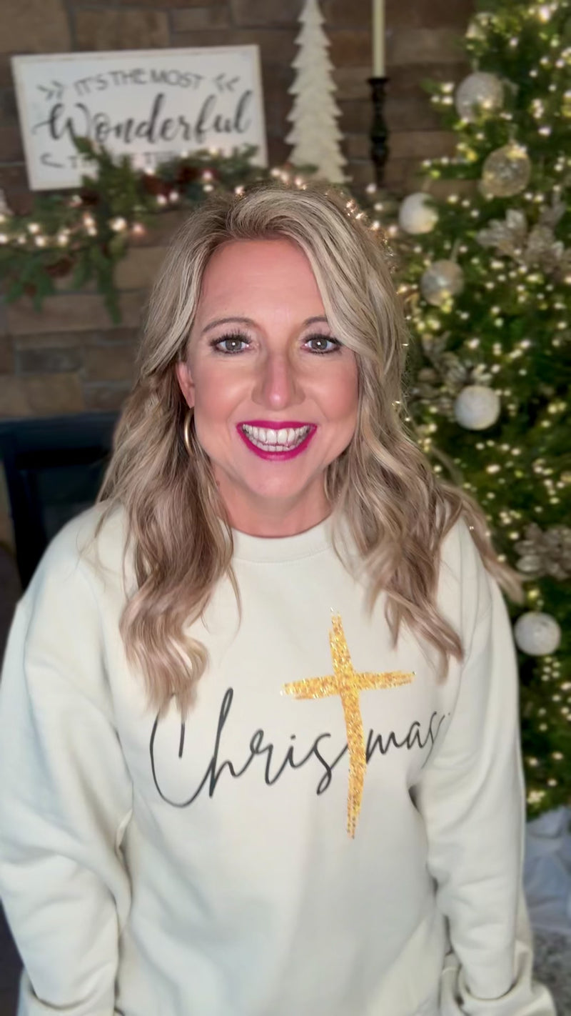 Gold Cross Christmas Crew Neck Sweatshirt : Tan
