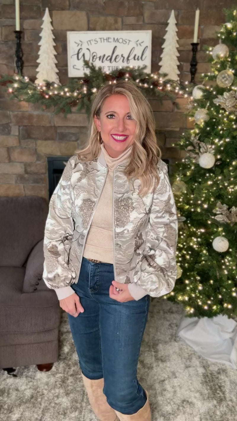 Miffy Long Puff Sleeve Floral Metallic Bomber Jacket : Silver