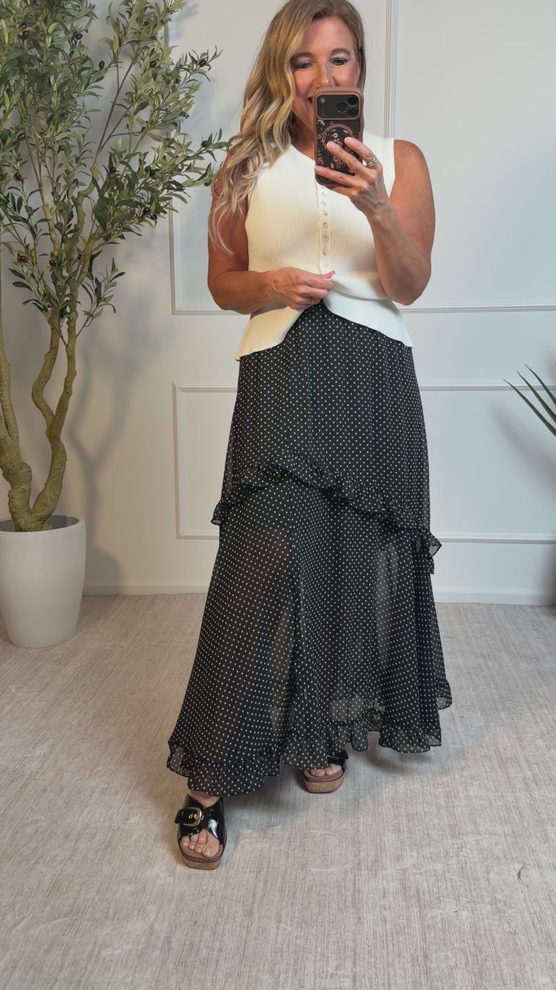 Raegan Ruffle Detail Polka Dot Side Slit Skirt : Black