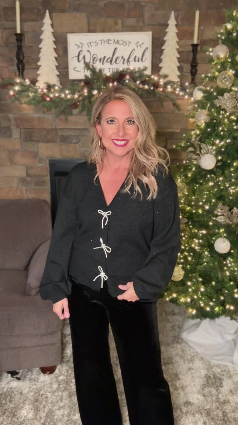 Sabetha Bow Sequin Mixed Cardigan : Black