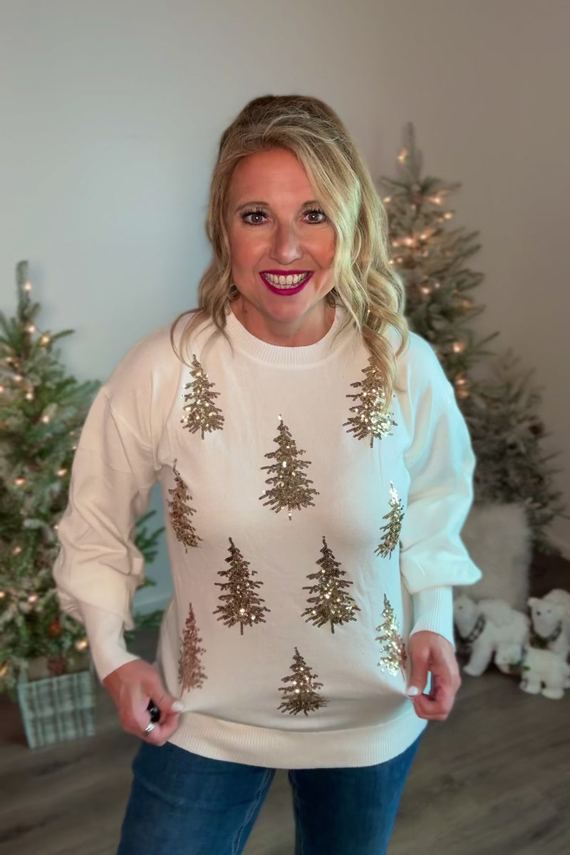 Sakura Tree Sequin Detail Knitted Sweater : Cream