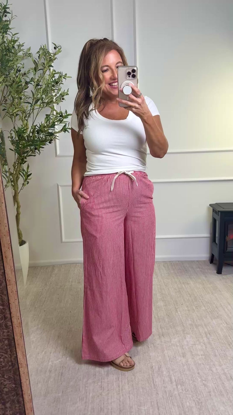 Sarahi Pinstripe Wide Leg Pants With Drawstring : Red
