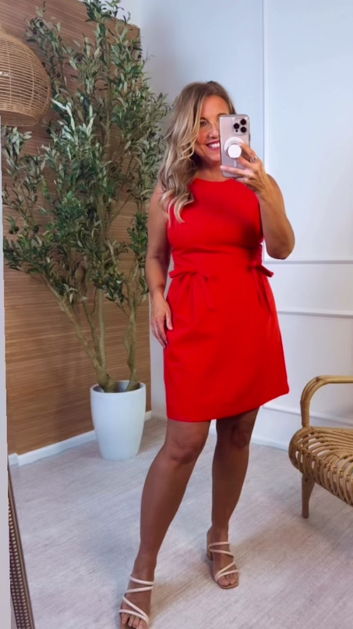 Selah Bow Tie Waist Detail Sleeveless Dress : Red