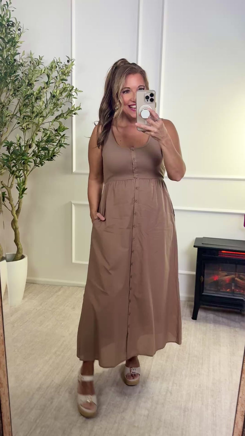 Tatum Knit Tank Button Up Midi Dress : Mocha